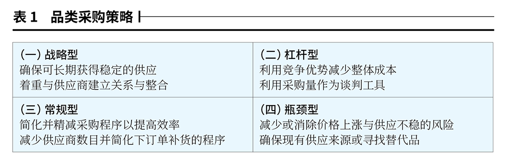 (一)品类采购策略矩阵