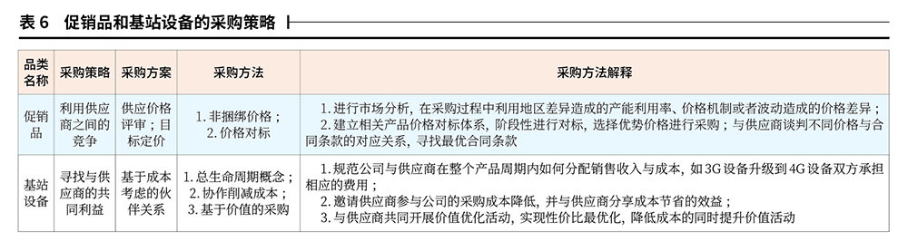 根据品类定位的结果制定促销品和基站设备的采购策略,如表6所示。